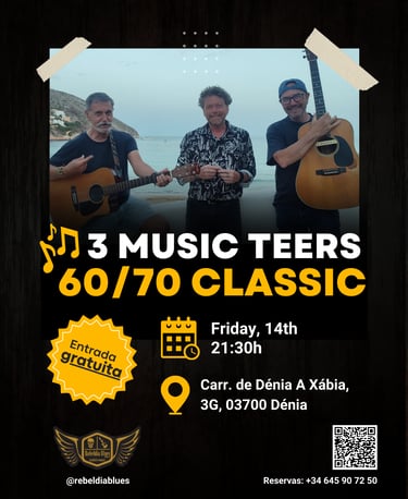 3 Music Teers en Concierto: Clásicos de los 60 y 70 en Rebeldía Blues