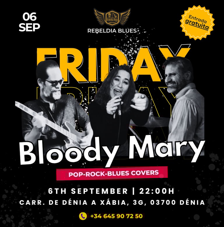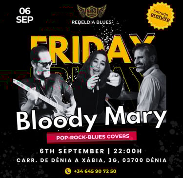 ¿Buscas un plan perfecto para este viernes por la noche? ¡Rebeldía Blues tiene justo lo que necesitas! Estamos emocionados de anunciar que el próximo 6 de septiembre, tendremos el placer de recibir en nuestro escenario a Bloody Mary, una banda que promete hacer vibrar a todos con su repertorio de covers de pop, rock y blues.