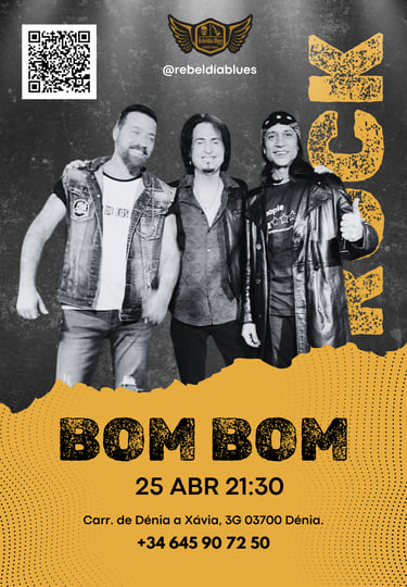 El viernes 25 de abril a las 21:30, el escenario de Rebeldía Blues Dénia se llenará de energía con la llegada de Boom Boom, una banda que trae consigo toda la fuerza y la actitud del mejor rock.