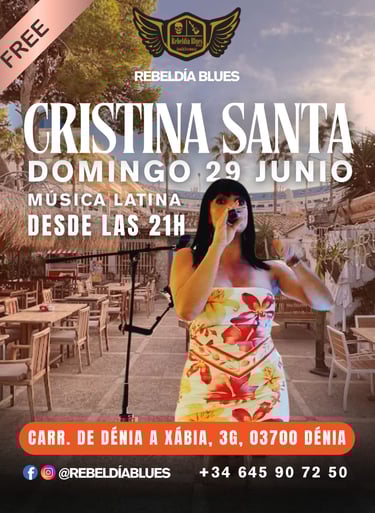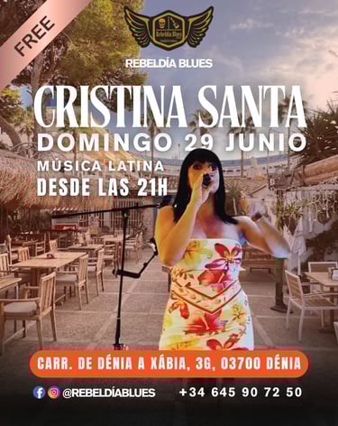Con su voz y carisma, Cristina Santa nos invita a un espectáculo donde el ritmo se vive y se siente en cada canción. Desde los clásicos de la música latina hasta los temas más actuales, prepárate para una noche que te hará bailar y disfrutar como nunca.