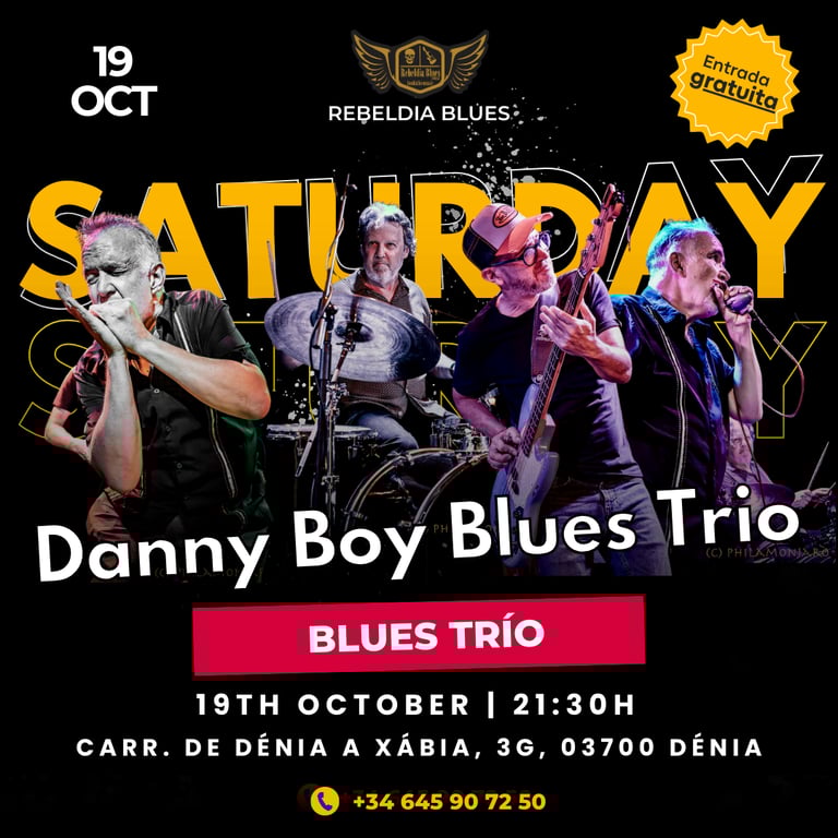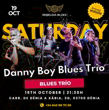 Este sábado, 19 de octubre, Rebeldía Blues se prepara para una noche de pura energía y pasión con el regreso de Danny Boy Blues Trio. Esta increíble banda promete llenar la noche de vibrantes ritmos de blues que te harán sentir cada acorde como si estuvieras en el corazón del Mississippi.