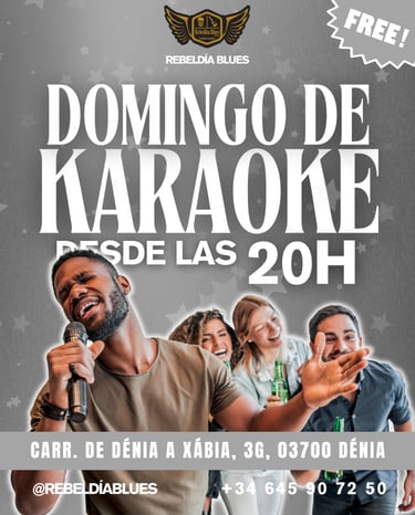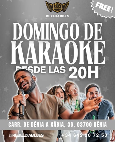 Este domingo a las 20:00 en Rebeldía Blues (Dénia), noche de karaoke GRATIS con ambientazo, copas y tapas. Canta, disfruta y pásalo en grande con amigos. ¡Entrada libre!