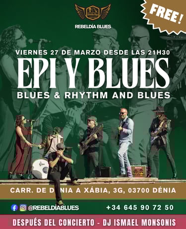 Epi y Blues llegan a Rebeldía Blues este viernes 27 de marzo con un directo cargado de blues y rhythm & blues. Música en vivo desde las 21:30 h, entrada gratuita y sesión con DJ Ismael Monsonis para cerrar la noche.