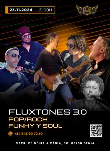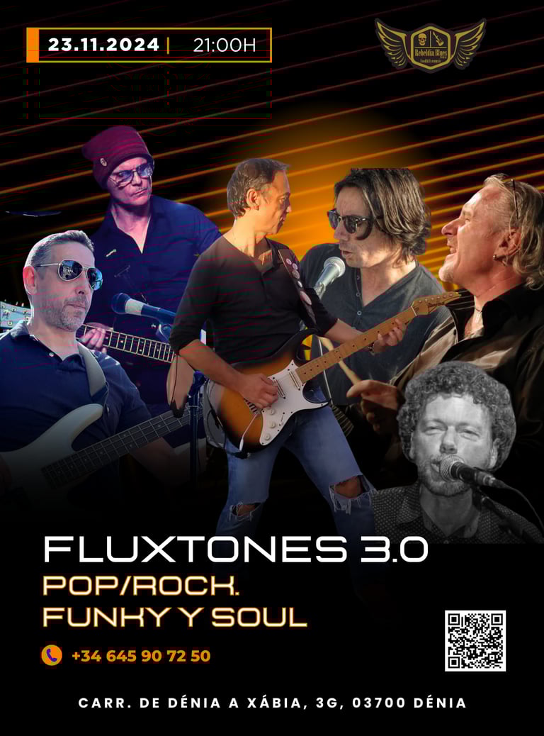 Disfruta de Fluxtones 3.0 en Rebeldía Blues, Dénia, este sábado 23 de noviembre de 2024. Un concierto de pop/rock, funky y soul que no puedes perderte.