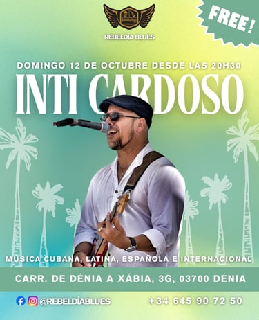 El domingo 12 de octubre prepárate para una noche con mucho ritmo de la mano de Inti Cardoso en Rebeldía Blues.