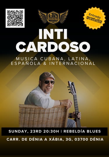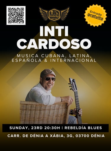 Este 23 de Marzo la mejor música latina, cubana, española e internacional de la mano de Inti Cardoso, en Rebeldía Blues Dénia.