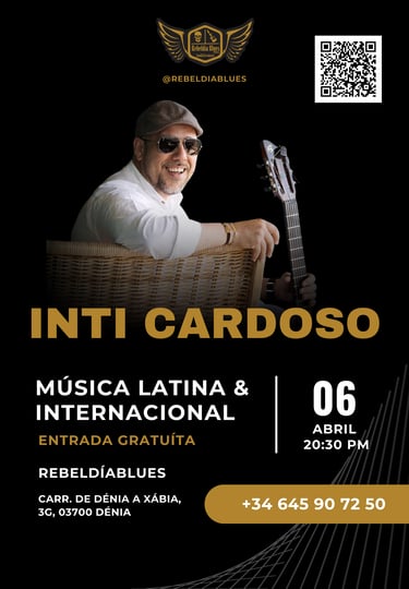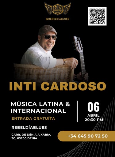 Disfruta la mejor música latina e internacional con Inti Cardoso en Rebeldía Blues Denia.