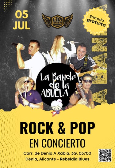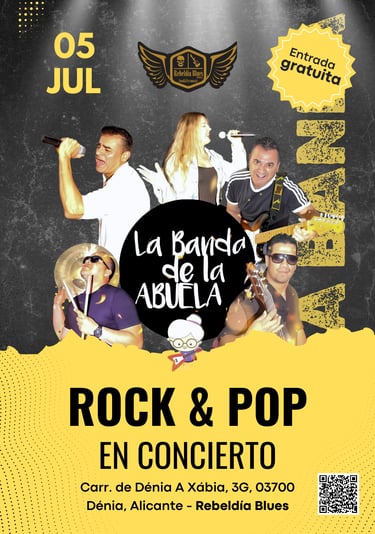 ¿Eres amante del rock y del pop? Entonces, no te puedes perder el espectacular concierto que tenemos preparado para ti. Este 5 de julio, la banda "Rebeldía Blues" se presentará en Carr. de Dénia A Xábia, 3G, 03700 Dénia, Alicante, ofreciendo una velada llena de energía, buena música y entrada gratuita.