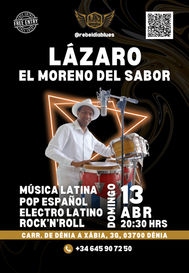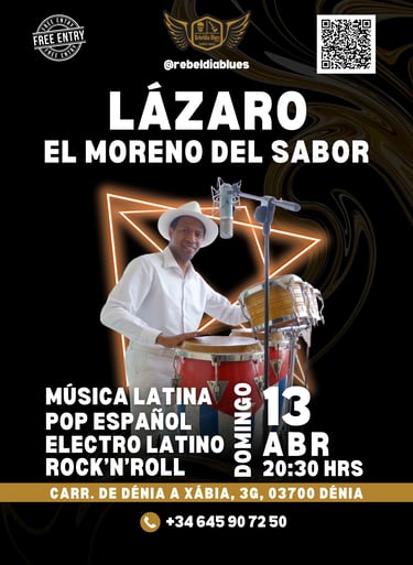 Este domingo 13 de abril a las 20:30, en Rebeldía Blues Dénia tenemos una cita imperdible con el ritmo, la pasión y el carisma de Lázaro El Moreno del Sabor.