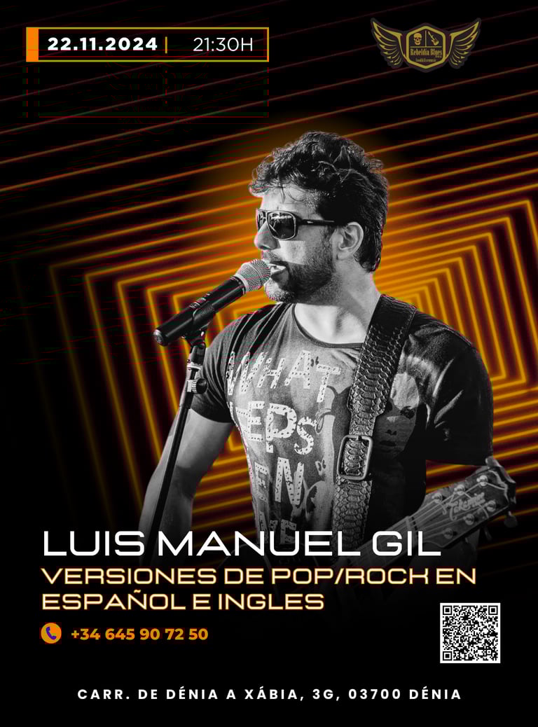 No te pierdas este viernes 22 de noviembre de 2024 el concierto de Luis Manuel Gil en Rebeldía Blues, Dénia. Vive una noche inolvidable de pop/rock en español e inglés.
