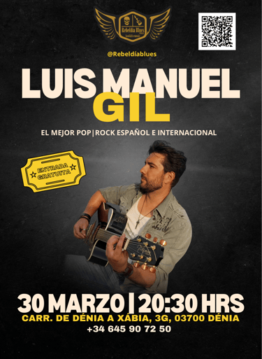 El próximo domingo 30 de marzo, te esperamos en Rebeldía para cerrar el fin de semana con el mejor ambiente musical. Acompáñanos a partir de las 20:30 para disfrutar del talento de Luis Manuel Gil, que llega con un repertorio cargado de grandes éxitos del pop/rock español e internacional.