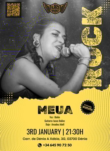 El viernes 3 de enero, prepárate para una noche inolvidable llena de música y talento. MEUA, un grupo excepcional de Covers Blues-Rock, te invita a disfrutar de un espectáculo único que promete cautivar todos tus sentidos.