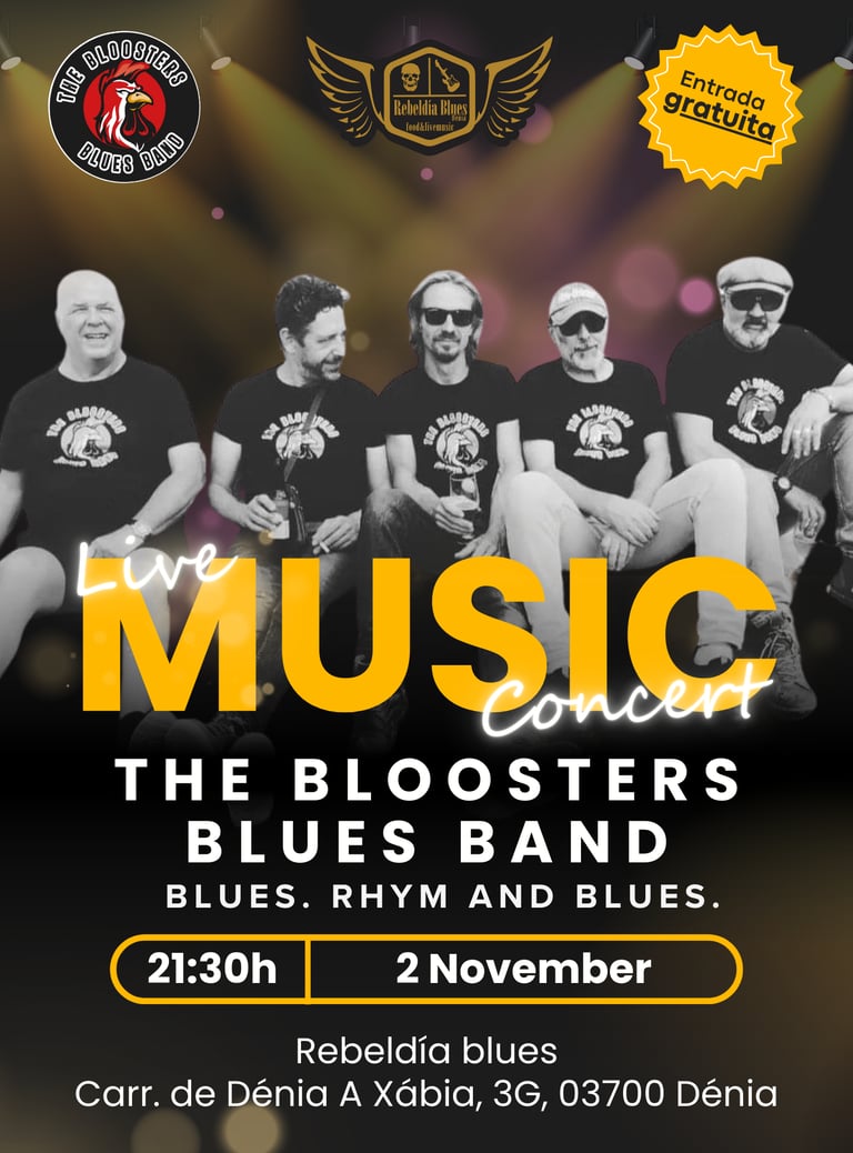 Vive el blues con The Bloosters Blues Band en Rebeldía Blues, Dénia. Noche de blues en vivo el 2 de noviembre a las 21:30h. ¡Entrada gratuita! | Rebeldia blues Denia