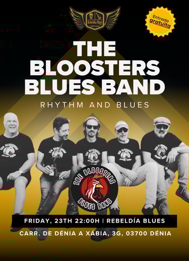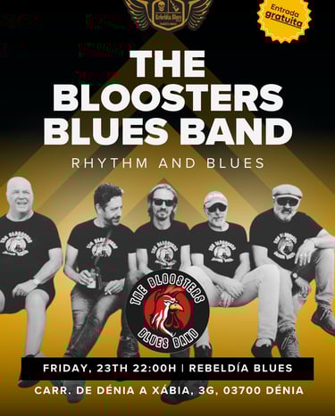 ¡Amantes del blues, tenemos una cita ineludible este viernes en Rebeldía Blues! Nos complace anunciar que The Bloosters Blues Band se subirá a nuestro escenario para una noche cargada de ritmo, energía y el mejor blues.