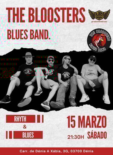 ¡Vuelve a Rebeldia Blues Dénia The Bloosters Blues Band este sábado 15 de marzo a las 21:30 h en Rebeldía Blues Dénia! Disfruta de una noche única con los mejores clásicos de Rhyth and Blues en directo.