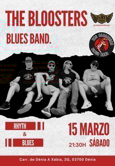 El próximo sábado 15 de marzo, a partir de las 21:30 h, el escenario de Rebeldía Blues Dénia se llenará de ritmo con la increíble actuación de THE BLOOSTERS BLUES BAND. Prepárate para disfrutar de una velada cargada de energía, feeling y la mejor música en directo.