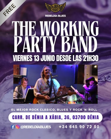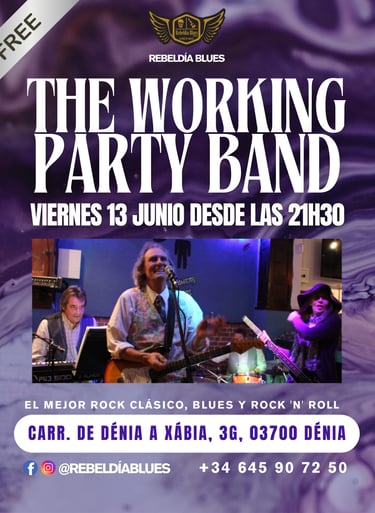 The Working Party Band toca en directo en Rebeldía Blues Dénia el 13 de junio. Rock clásico, blues y rock ‘n’ roll en un ambiente único.