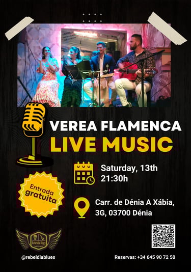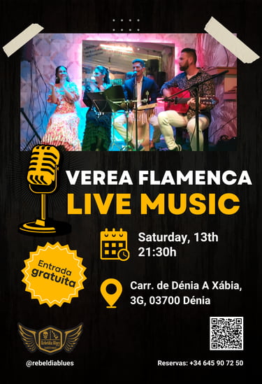 Este sábado, 13 de julio, a las 21:30h, te invitamos a una noche mágica de música en vivo con Verea Flamenca en Rebeldía Blues.