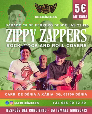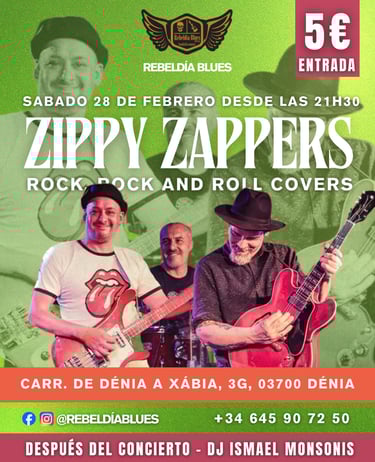 El sábado 28 de febrero Rebeldía Blues recibe a Zippy Zappers con una descarga de rock & roll y los mejores covers para una noche llena de ritmo, clásicos inolvidables y pura energía en directo.